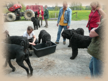 Hier warten Joachim mit Iakusha und Balou, Sabine mit Sam und (im